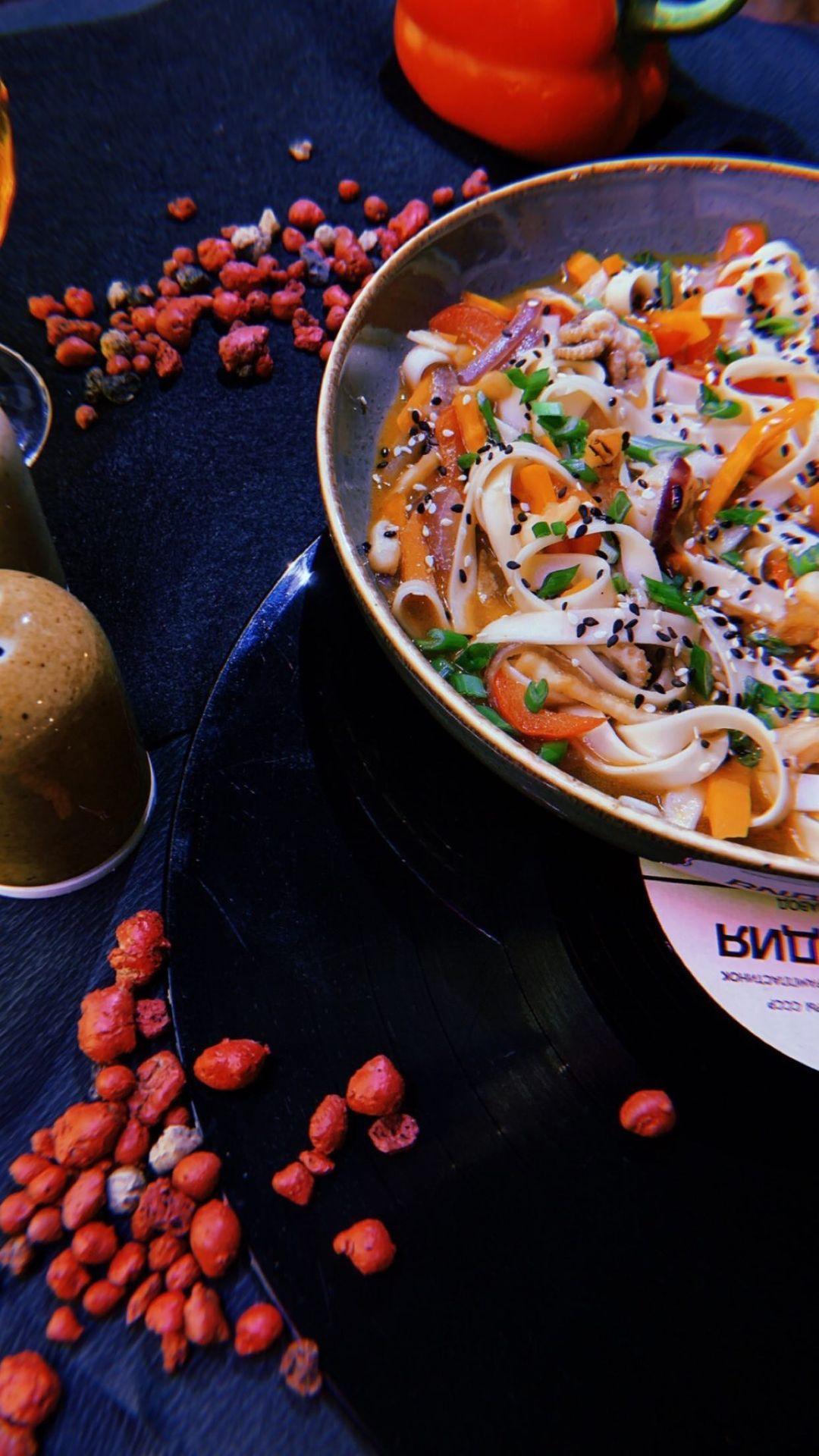 Сытный суп вьетнамской кухни с рисовой лапшой, кусочками телятины и овощами, подаётся с лаймом и кинзой