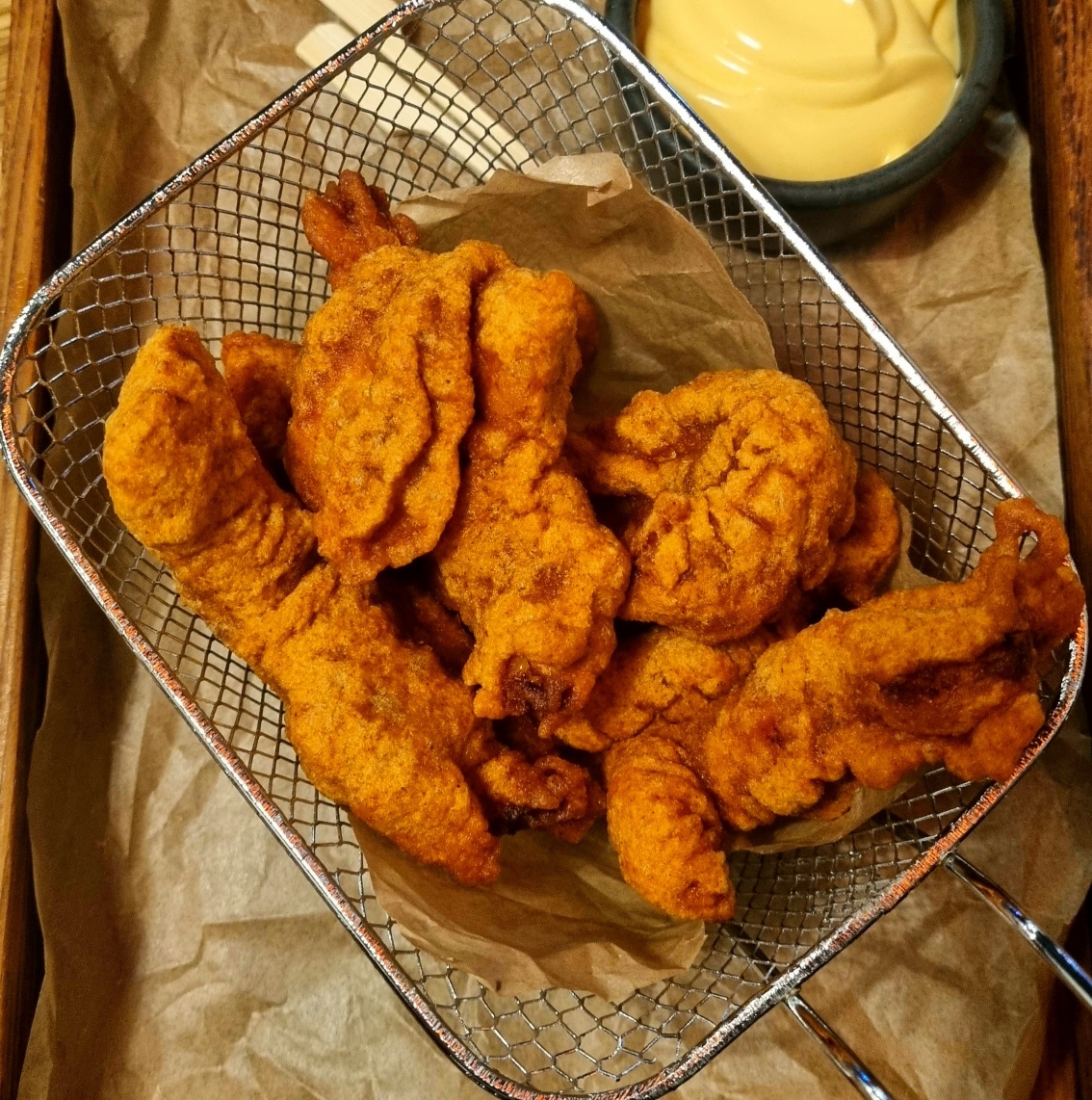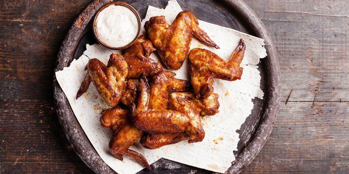 Острые крылышки, со сметанным соусом и овощами
